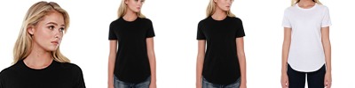 3.5 oz., 100% combed and ring-spun liquid cotton; 40 singles; Fashion fit; Side seams; Perfect fit, wardrobe essential, scalloped hem; Tear-away label; Made in a w.r.a.p. certified factory;