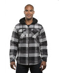5.4 oz. 100% cotton shell, 100% poly filling; Full zip front with nylon zipper; Side pockets; 2 chest pocket with flaps; Adjustable button cuffs; Sherpa lined hood with drawcord;