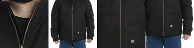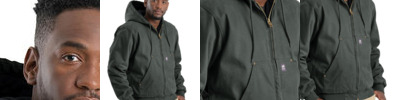 12 oz., super-duty cotton duck; Heavyweight quilt-lined taffeta liner; Triple-needle stitched main seam; Heavy-duty brass zipper; Three-piece insulated hood with drawstring; Pleated elbows and action back; Two front patch pockets; Three inside pockets; Manufactured in a LEED (Leadership in Energy and Environmental Design) certified factory;