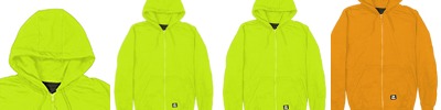 9 oz., 100% polyester fleece; 5 oz., thermal lining; Nylon front zipper; Reinforced bartacks at stress points; Double-layered three-piece hood; Double-needle stitched main seams; Oversized front pockets;