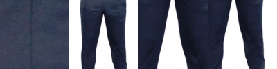 - Contrast-color ribbed binding at leg opening