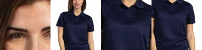 100% polyester wicking knit with True Hue Technology™ that helps prevent dye migration; Moisture-wicking; Ladies' fit; Tear away label; V-neck collar; Fully reversible; Each layer hemmed separately for embellishment;