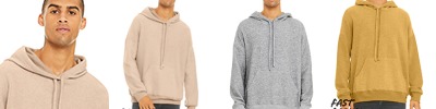 7.3 oz., 60% cotton, 40% polyester mélange fleece; Contrast self-fabric sleeves and hood; 1x1 rib cuffs and waist; Full front zippered placket;