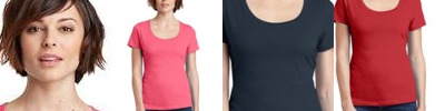 50% Polyester, 38% Cotton, 12% Rayon; Contains organic & recycled materials; Bound self neckband; Blind hem stitching detail;