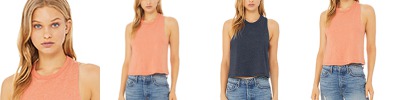 52% combed and ring spun cotton, 48% polyester; 32 singles; Raw arm hole; Racerback; Cropped; Side-seamed; Tear away label;