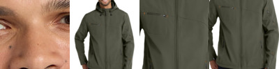 This fully waterproof, wind resistant and tech-savvy jacket delivers complete protection without the bulk. Made with a polyester woven shell bonded to polyester microfleece, this color blocked soft shell is great for cold days. Movement is a breeze with four-way stretch fabric. Plus, the interior MP3 pocket keeps the tunes coming in this sleek, urban jacket.