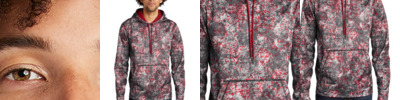 With its allover Mineral Freeze sublimated print, this moisture-wicking pullover combines a natural granite look with high-tech performance. 5.5-ounce, 100% polyester Anti-static Three-panel hood Solid self-fabric hood lining Solid dyed-to-match drawcords with metal tips Taped neck Self-fabric cuffs and hem Front pouch pocket * Please note: This product is transitioning from woven labels to tag-free labels. Your order may contain a combination of both labels