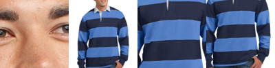 A lighter weight and authentic rugby polo in popular team colors. 6.5-ounce, 100% ring spun cotton jersey Engineered with yarn-dyed stripes Woven twill collar Twill-taped neck 2-button twill-reinforced placket with rubber buttons 1x1 rib knit cuffs