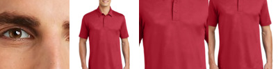 Tough enough to conquer moisture, snags and color bleed, this smooth polo also features a subtle, allover embossed geometric pattern. 4.7-ounce, 100% polyester jersey with PosiCharge technology and embossed pattern Self-fabric collar Tag-free label 3-button placket with dyed-to-match rubber buttons Set-in, open hem sleeves