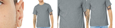 A lightweight tri-blend essential that's perfect all year round. 4.5-ounce (153 GSM) 50/25/25 polyester/combed ring spun cotton/rayon, 32 singles Tear-away label Shoulder to shoulder taping