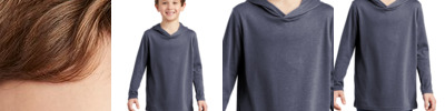 A laid-back vibe captured in a soft hoodie. 4.5-ounce (153 GSM) 70/30 combed ring spun cotton/polyester French terry, 40 singles Tear-away label Back neck tape Unlined hood Front pouch pocket Dyed-to-match drawcords with metal tips and grommets