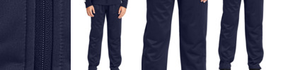 Designed for movement, these classic tricot track joggers have a tapered fit and easy on/off zippers. 100% polyester tricot Soft-brushed backing Tag-free label Elastic waistband No drawcord Side seam pockets Reverse coil extended leg zippers
