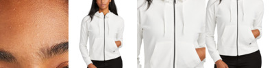 Designed with an active workplace in mind, this jacket is ideal for light layering. 5.9-ounce, 100% polyester smooth-faced fleece Zip-through collar Rib knit detail at collar Three-panel hood with matte black eyelets and wide dip-tipped drawcords Molded center front zipper Open hand pockets Rib knit cuffs and hem