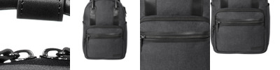 Putting a modern twist on a classic design, this convertible pack is built to fit in where you need it. Carry it as a backpack or as a tote for the ultimate versatility. Two-tone 600D polyester canvas Genuine leather trim and details Metal zippered main compartment Padded back laptop compartment Zippered top, bottom and side pockets Stowable shoulder straps Leather carry handles Leather zipper pulls with logoed Brooks Brothers rivets Exterior debossed Brooks Brothers leather label Zippered luggage trolley pass through on back Laptop compartment: 15'h x 11'w Dimensions: 16.5'h x 11.5'w x 5.25'd Capacity: 996 cu. in./16.3 L Weight: 2.82 lbs./1.27 kg Note: Bags not intended for use by children 12 and under.