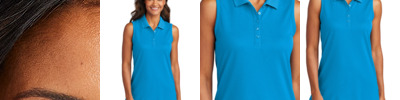 A sleeveless polo option for her joins our popular Dry Zone UV Micro-Mesh Collection. 4.6-ounce, 100% polyester double knit pique UPF rating of 30 Moisture-wicking Snag-resistant Flat knit collar 5-button placket Bound armholes Pearlized, dyed-to-match buttons Straight hem with side vents Tag-free label