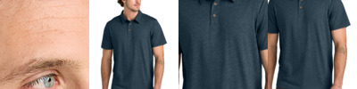 A budget-friendly choice, this remarkably soft tee is created from a CVC blend for an eye-catching texture. 4.5-ounce, 60/40 cotton/poly 1x1 rib knit neck Shoulder to shoulder taping Tear-away label Please note: This product is transitioning from white to black tear-away labels. Your order may contain a combination of both colored labels.