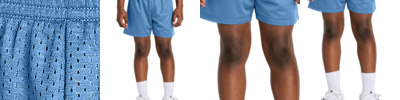 Keep up the pace in a moisture-wicking, open hole mesh short with PosiCharge technology which locks in your logo. 3.4-ounce, 100% open hole poly mesh with PosiCharge technology 2.5-ounce, 100% poly tricot lining Moisture-wicking Open-hole mesh 7-inch inseam Elastic waistband with continuous loop drawcord Tear-away label