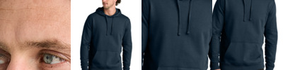4.7-ounce, 100% cotton jersey 60/40 CVC cotton/polyester (Heathers, Safety Green, Safety Orange) 90/10 CVC cotton/polyester (Athletic Heather) Double-needle coverstitching on front neck and hood hem Shoulder to shoulder taping 1x1 rib knit cuffs Classic fit Tear-away label