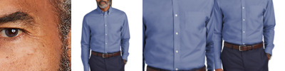 Elevate your business-casual vibe with a budget-friendly shirt that's polished and professional. The subtle two-color nailhead pattern adds a touch of refinement. 4-ounce, 60/40 cotton/recycled polyester Easy care Open collar Bust darts Dyed-to-match pearlized buttons Rounded adjustable barrel cuffs Rounded hem