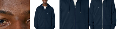 A premium zipped hoodie with a classic look. Organic and recycled fabrics blend beautifully, offering cozy warmth with refined details that stand out from the crowd. 10.3-ounce (350 GSM) 80% organic combed ring spun cotton/20% recycled polyester brushed 3-end fleece, cotton face Double self-fabric lined hood Dyed-to-match round drawcords with metal tips Metal eyelets Herringbone back neck taping Self-fabric half moon at back neck Exposed metal zipper 1x1 rib knit cuffs and hem Double-needle topstitch on armholes, cuffs and hem seams Front pouch pockets 100% recycled polyester tear-away label Colors up to 5XL: White, Black, French Navy, Heather Grey, Natural Raw, Stargazer Modern medium fit: Designed for a roomier fit, opened up across the chest and shoulders.
