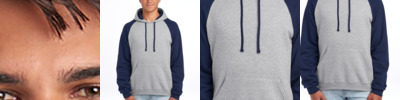 8-ounce, 50/50 cotton/polyester NuBlend ® pill-resistant fleece 48/52 cotton/polyester (Oxford) Made with sustainably sourced USA-grown cotton High stitch density for a smooth printing surface Two-ply hood with grommets Single-needle topstitch on front neck Contrast tipped and knotted flat drawcords Contrast raglan sleeves Front pouch pocket 1x1 rib knit cuffs and hem Double-needle coverstitching on armholes and hem Tear-away label