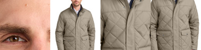 Blending contemporary with classic, this beautifully diamond-quilted coat delivers water-resistant performance and polished style for year-round layering. 65/35 polyester/cotton with a durable water-repellent (DWR) finish 3.5-ounce polyfill insulation Faux leather Brooks Brothers logo patch Self-fabric hanging loop Zip-through, rib knit lined collar Reverse coil 2-way front zipper with metal Brooks Brothers Golden Fleece logo zipper pull Storm flap Interior snap chest pocket Dual-entry hand pockets secured with flaps and Brooks Brothers logo snaps Decoration access pocket