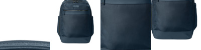 500D x 750D polyester, knitted fabric backing 420D polyester lining Genuine leather trim and details Front zippered pocket with leather pull for decoration access Zippered main compartment with interior zip mesh pocket and slip pocket Dedicated back padded laptop compartment Zippered front compartment with office Side pockets with elastic gussets Ergonomic, padded and adjustable shoulder straps Padded mesh back Leather feet at base Metal zipper pulls with Brooks Brothers logo Exterior debossed leather label Trolley pass through with concealed zippered pocket Laptop compartment: 15.75'h x 11.5'w; fits most 17' laptops Dimensions: 17'h x 11.5'w x 7'd Capacity: 1,526 cu. in./25 L Weight: 2.7 lbs./1.23 kg Note: Bags not intended for use by children 12 and under.