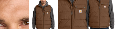 Carhartt Montana styles are inspired by the West-and built tougher than the rest. Insulated for warmth and engineered to combat wind and rain, these outerwear pieces are for cold-weather warriors who demand warmth, performance and style. 4.5-ounce, 100% nylon 100% polyester lining Blown-in insulation for extra warmth Rain Defender ® durable water repellent (DWR) Wind Fighter ® technology tames wind Carhartt label sewn on left chest Sherpa-lined fleece in upper body Mock neck collar Left chest pocket with hidden zipper Large interior utility pocket for extra storage Secure-zip lower hand pockets Adjustable drop tail hem Loose fit
