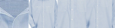 - Three-button placket with self fabric collar and integrated collar stays